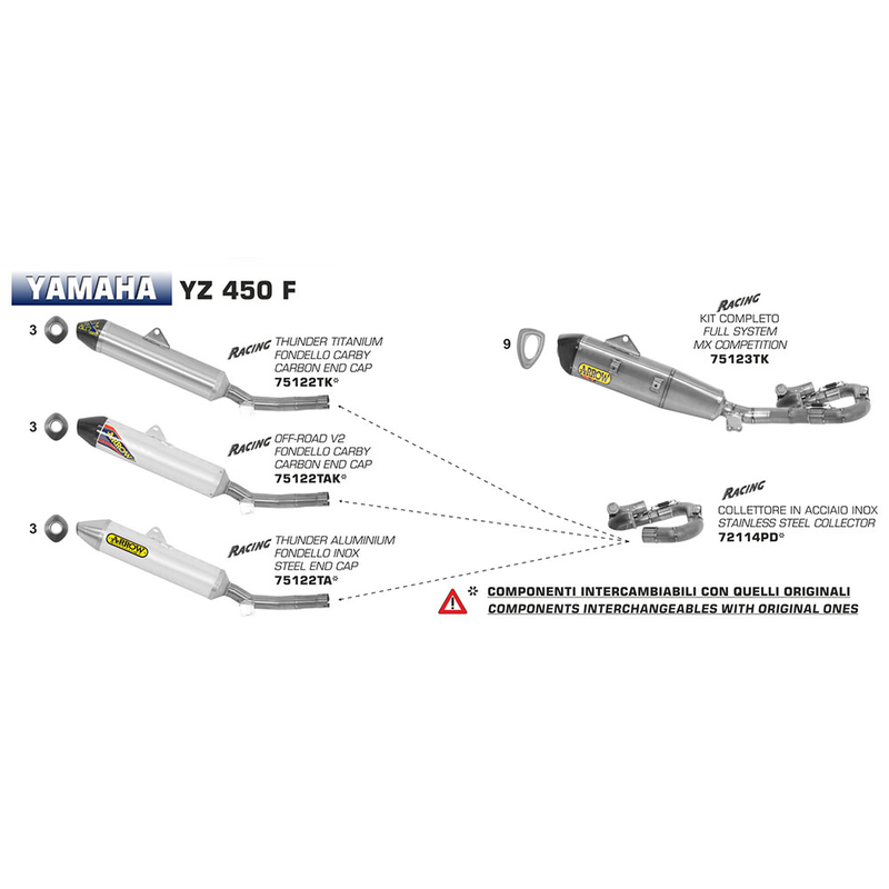 • - All of the ARROW Racing Slip-On silencers designed for this model will connect with this performance Stainless Racing Collector that utilizes a 'Power' cannister.