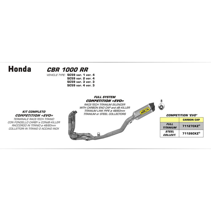 Note - For correct initial fitment, this silencer must be connected to the ARROW Collectors - Part# 71607MI