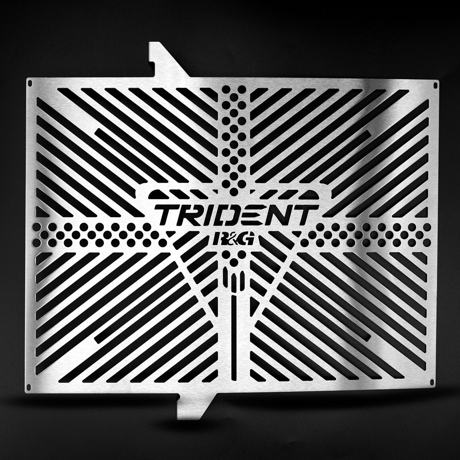 Our Branded Radiator Guards have been specially designed with bike enthusiasts in mind, each kit containing a unique design made to compliment your bike. These exciting new Branded Radiator Guards are more than just visually outstanding, their stainless steel construction allows the guard to be incredibly strong and impervious to rust. Each laser-cut guard is crafted with a specific bike series in mind, boasting a distinctive design, while still allowing maximum airflow to the radiator so that cooling isn't compromised. The guard attaches easily and quickly to the radiator, by utilising the existing mounting bolts. No modifications need to be made to the bike to install.This Specific pair of Branded Radiator Guard is suitable for Triumph Trident 660 '21-models.