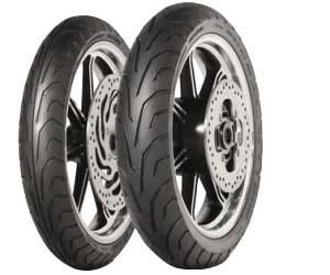 • Front tyre features continuous center grooves for wet grip and steering characteristics.