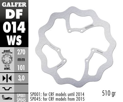 Non-floating Wave design, also sold as a kit with a caliper relocation bracket. Every high-quality, Galfer-patented Wave rotor is made from a proprietary mix of virgin high carbon 420 stainless steel, laser cut (never stamped), double disc-parallel ground to assure perfect parallel flatness and heat treated to each specific application. KBA and TUV approved. Precision made in our Galfer factory in Spain.