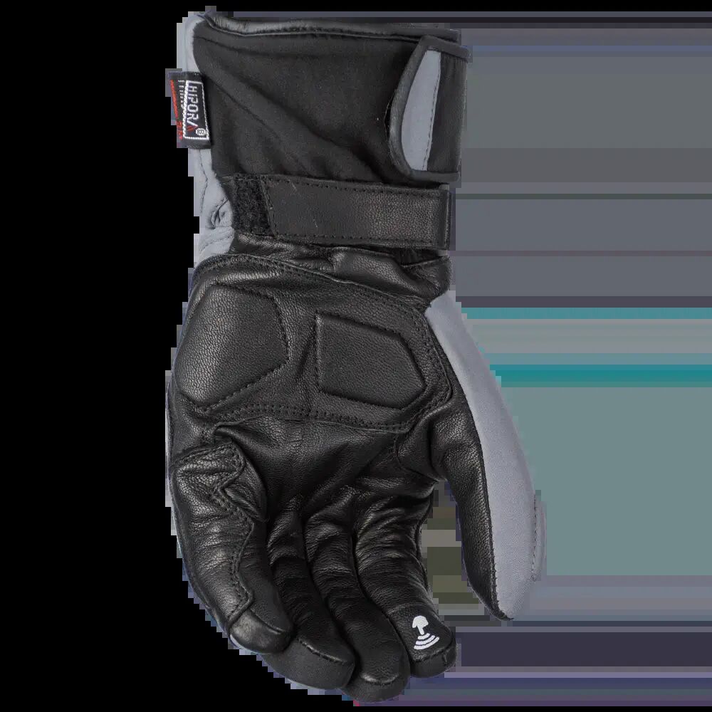 Motodry WNT-2 Glove Built for serious winter riding, the Motodry WNT-2 Glove combines top-quality aniline cow leather and textile construction for maximum durability and comfort. A thermal 3M Thinsulate lining keeps hands warm, while the 100% waterproof and breathable Hipora membrane ensures all-weather performance. Designed with rider safety in mind, it features a reinforced leather palm, raised protection panels, hard knuckle guards, and side hand/finger reinforcement. The double-strap wrist closure and large opening cuff strap provide a secure, adjustable fit, while 3M dark grey reflectives enhance visibility in low light.