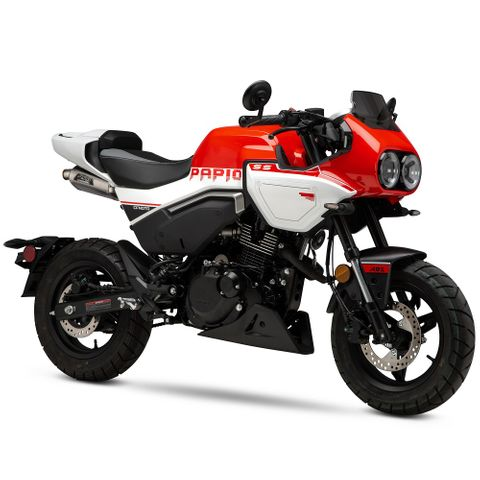 Our RS-9 Street Series Slip-on was a perfect match for the Papio SS styling cues and fits perfectly under the tail section of the little machine. Performance was a hit as well, the Papio SS responded very well adding 4.0 % max hp and 4.0 % max torque the the 126cc engine. On the street you can really feel the difference and the sound note from the RS-9 is nothing short of legendary. Ditching the stock muffler will save you almost two pounds as well. Now the new Papio SS is even more fun!