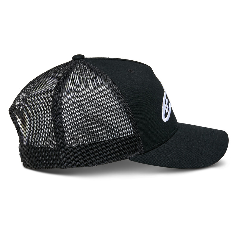 This curved bill trucker cap features a structured crown and classic snap-back closure for an adjustable, secure fit. The front panel is made from durable twill, while the mesh back provides breathability and comfort in warm conditions. A bold embroidered logo adds standout branding, complemented by internal and back label detailing. Designed for everyday wear with a modern, street-ready edge.