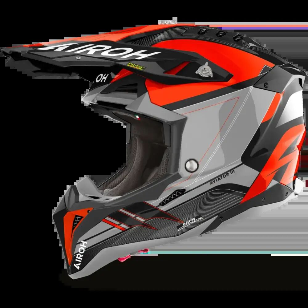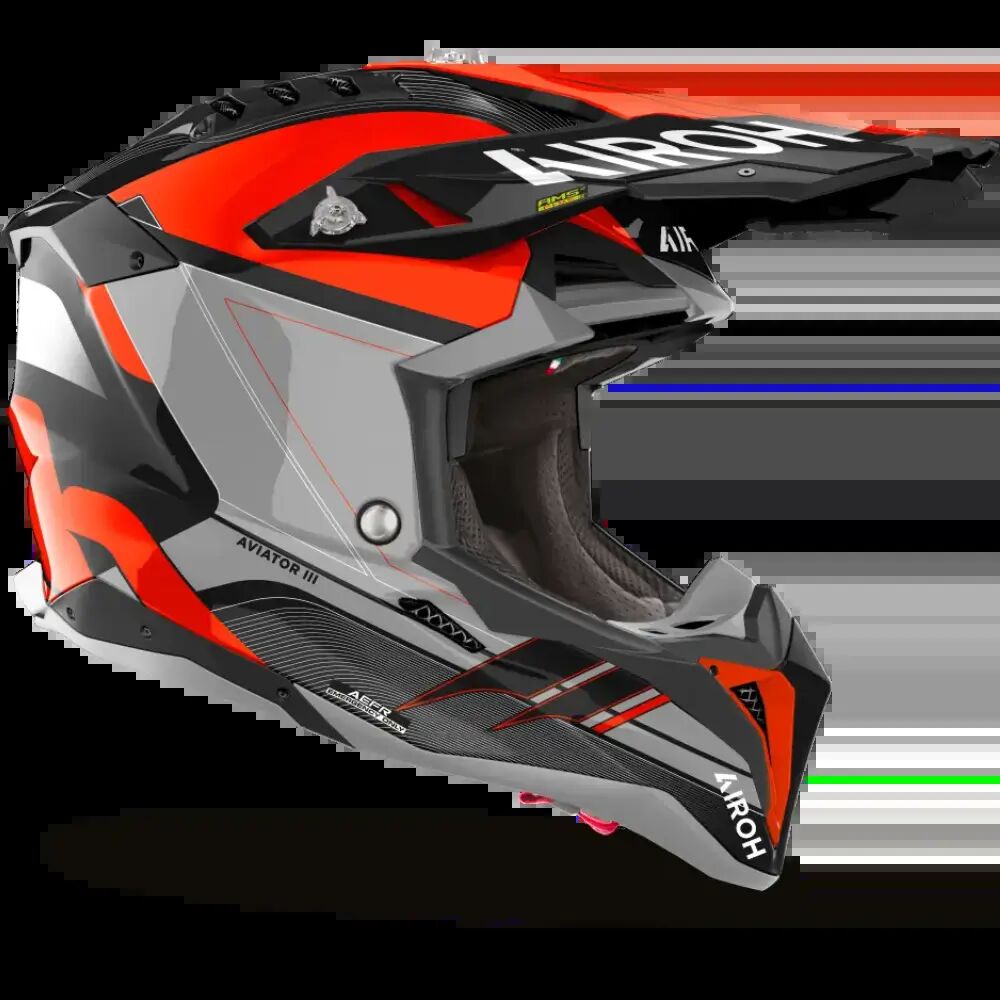 Raise the bar....... Leave everyone behind. Again. The difficulty is not to win once, but to keep doing it. Aviator 3 raises the level of competition and redefines the standards of an offroad helmet. The shell, available in the Carbon 3K version exclusively on the Primal graphic, provides the noble HPC Carbon for the other graphics variants. There are 4 measures of the outer shell in both versions, which was designed using the wind tunnel to engineer the best shapes and performance. Extreme attention was therefore paid to aerodynamics, with the aim of making the helmet stable even at high speeds, and to thermodynamics, to optimise thermoregulation. Airoh's technological sum is condensed in this new product, in which the AMS2 Plus (Airoh Multiaction Safety System Plus), AEFR (Airoh Emergency Fast Release), and AMLS (Airoh Magnetic Lining System) systems are profuse, which evolves, also including the magnetic cheek pads. The 8 air intakes and spoilers with integrated extractors make the fitting of Aviator 3 comfortable even in the most extreme conditions of use, as does the innovative AHS (Airoh Hydration System) integrated into the EPS.