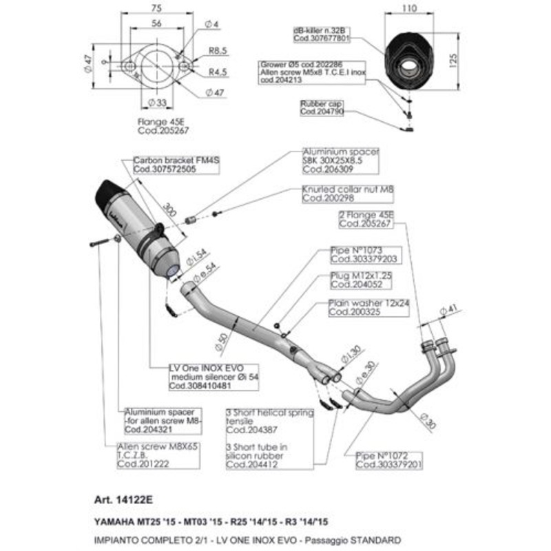 LV FULL SYST A | LV ONE EVO | STAINLESS | YZF-R25 / R3 / MT-25 / MT-03 14>21
