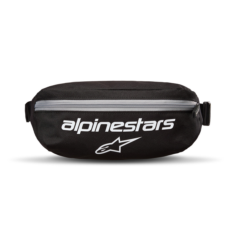 Compact 2L hip bag with dual compartments, air mesh back, and Alpinestars logo branding.