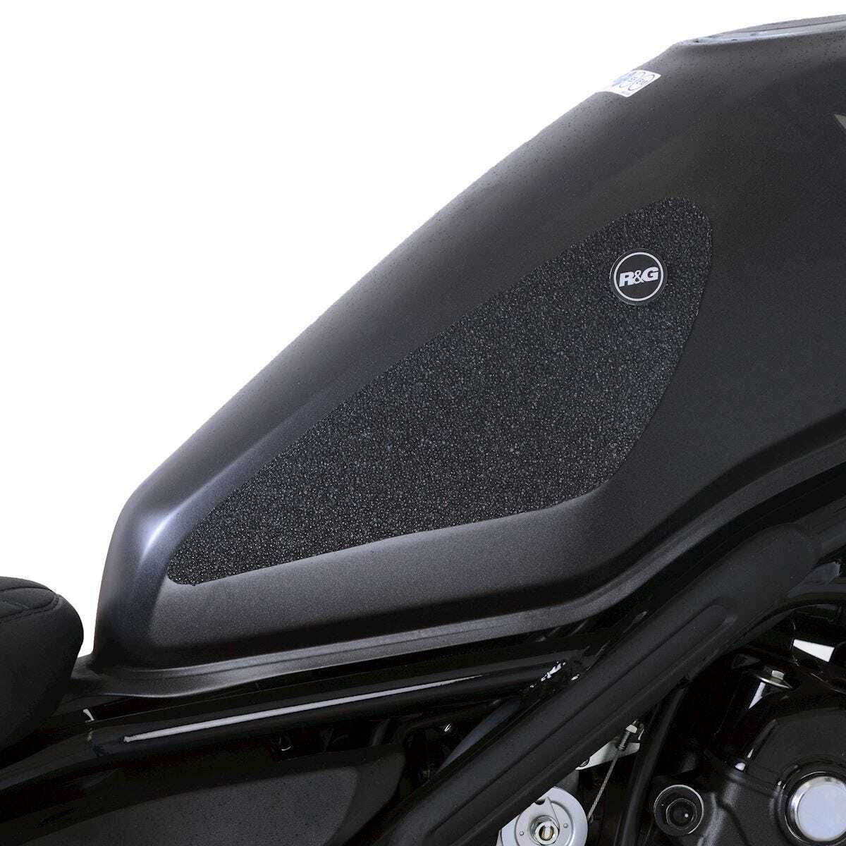 R&G Tank Traction Grip kits are available for many different bike styles and brands, with new applications released regularly. The unique R&G Tank Traction Grip texture was specifically designed to be both soft and durable, providing the rider with the grip and feel he/she needs to assist in better bike control, enabling the rider to maintain a stable body position while cornering and braking, whilst also relieving fatigue and providing the rider with complete confidence allowing him/her to fully focus on the road (or track) ahead instead of slipping and sliding on the tank. Each Tank Traction Grip kit is supplied with precision pre-cut adhesive pieces, designed to fit the intended bike, typically in either 2, 3, 4 or 6 pieces (in total) depending on the shape of the tank and adjoining fairing. The high-strength adhesive backing ensures a highly durable product that will stay exactly where you put it, as well as not affecting or damaging the paintwork. Each R&G Tank Traction Grip kit is available in black and ultra-clear finishes to blend into your bike's paintwork or stand out, depending on your preference. R&G Eazi-Grip™ works in both wet and dry conditions and is equally at home on the track as it is on the commute home!These 2-piece R&G Tank Traction Grips have been specially designed for the Honda CMX500 Rebel (S) '17- models. """