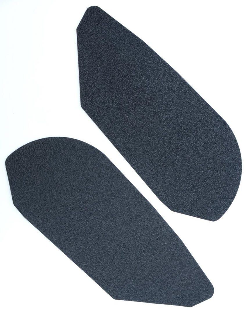R&G Tank Traction Grip kits are available for many different bike styles and brands, with new applications released regularly. The unique R&G texture was specifically designed to be both soft and durable, providing the rider with the grip and feel he/she needs to assist in better bike control, enabling the rider to maintain a stable body position while cornering and braking, whilst also relieving fatigue and providing the rider with complete confidence allowing him/her to fully focus on the road (or track) ahead instead of slipping and sliding on the tank. Each Tank Traction Grip kit is supplied with precision pre-cut adhesive pieces, designed to fit the intended bike, typically in either 2, 4 or 6 pieces (in total) depending on the shape of the tank and adjoining fairing. The high-strength adhesive backing ensures a highly durable product that will stay exactly where you put it, as well as not affecting or damaging paintwork. Each R&G Tank Traction Grip kit is available in black and ultra-clear finishes to blend into your bike's paintwork or stand out, depending on your preference. R&G Tank Traction Grips work in both wet and dry conditions and is equally at home on the track as it is on the commute home! Please note: R&G Tank Traction Grips now come with a 25mm diameter stick on emblem. This Tank Traction Grip has been specially designed for the Triumph 675 Daytona and Street Triple '06-'12 models. Made in the UK.