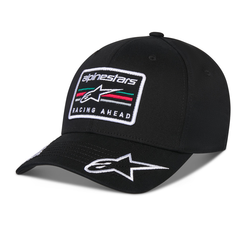 This curved bill cap combines classic style with detailed branding. Crafted from durable twill fabric, it features a structured crown and a flexible back for an adjustable fit. The front showcases an Astars logo stripe embroidery patch, complemented by Alpinestars and Astars logos embroidered on the top of the bill. Finished with internal and back labeling, this cap offers a premium look with motorsport-inspired flair.