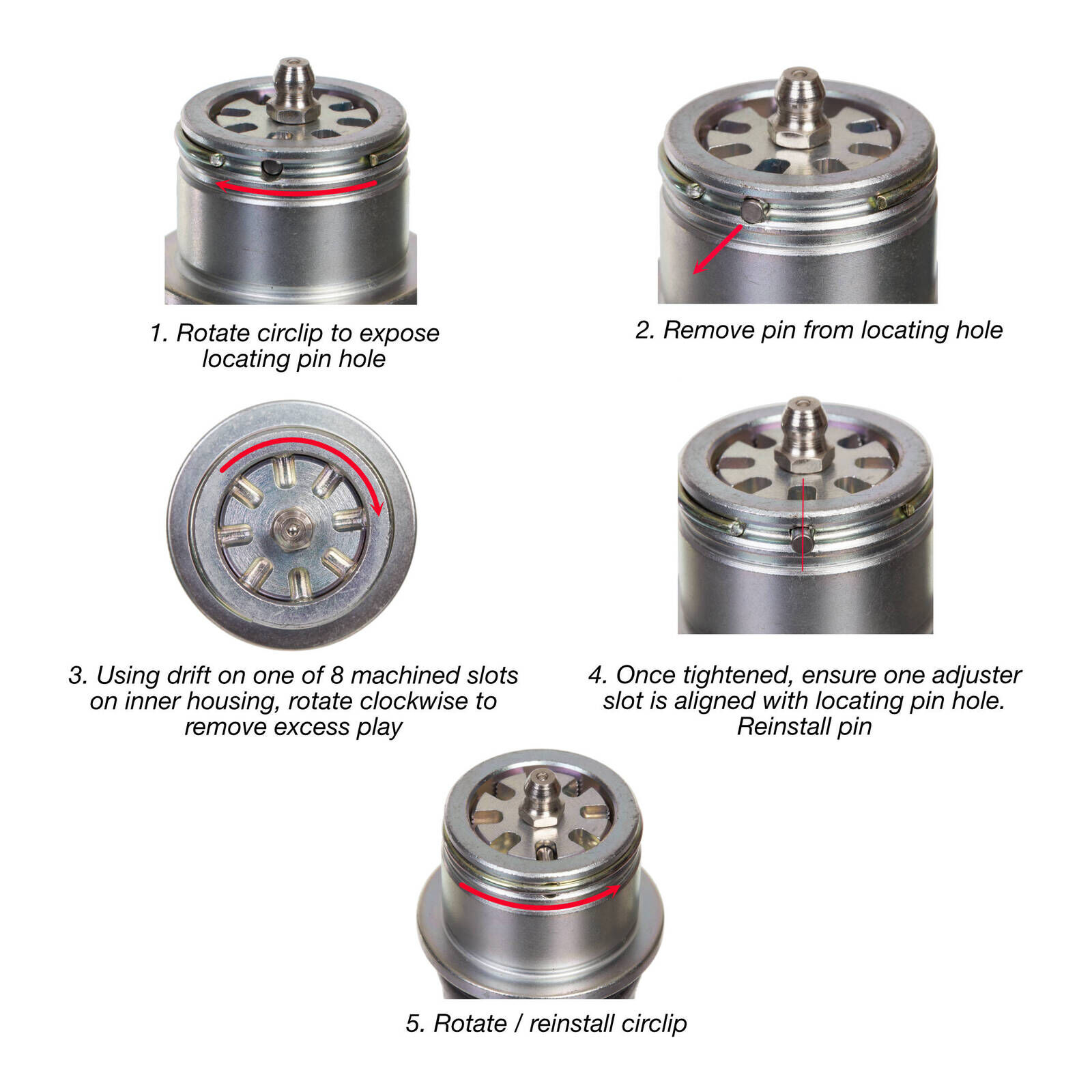 • When Whites adjustable ball joints are installed and you find excess play simply adjust the play away WITHOUT having to remove the ball joint from your bike