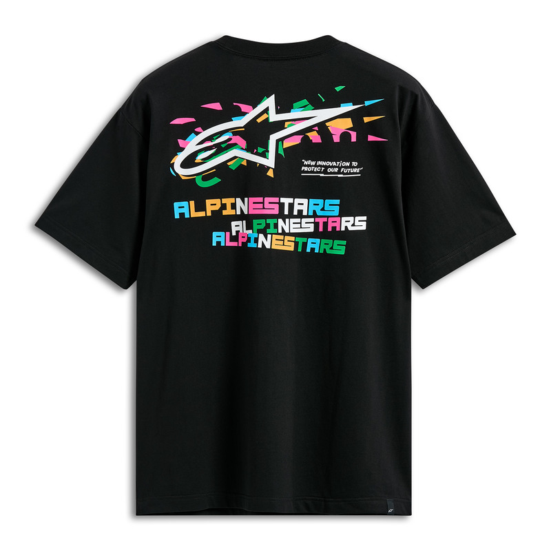 Oversized tee with vibrant multi-color Astars logos on front and back, featuring soft hand print.