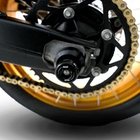 These spindle sliders mount directly through the rear spindle axle of the BMW F 900 R/ XR '20 providing both crash protection to the rear components, protecting the swingarm and components, like the brakes and drivetrain in the event of a crash or drop but also functioning as paddock stand bobbins, allowing the bike to be lifted up on a Rear Paddock Stand for cleaning and maintenance. The best of both worlds!