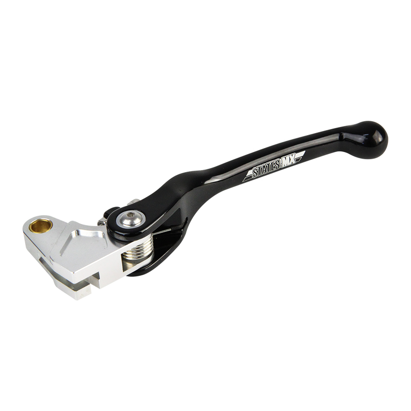 The States MX Flex Clutch lever is made from CNC Forged Alloy and is spring loaded to allow the lever to flex forward in the event of a crash. It has adjustable lever positioning through the lock screw mechanism which allows the rider to fine tune the distance the lever sits from the bar for a better clutch feel.