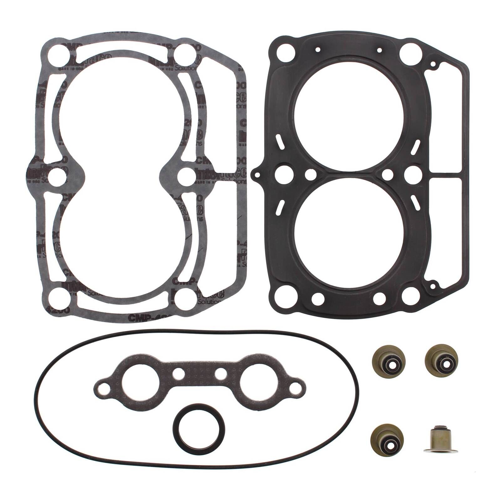 • These sets include the head base and exhaust gaskets valve seals O-rings and other gaskets to complete a top-end rebuild.